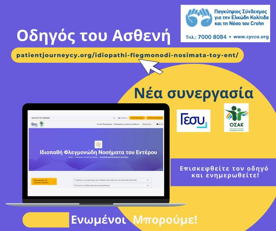 Νέα συνεργασία για τη στήριξη των ασθενών!Η Ομοσπονδία Συνδέσμων Ασθενών Κύπρου (ΟΣΑΚ) σε συνεργασία με τον Οργανισμό Ασφάλισης Υγείας (ΟΑΥ) δημιούργησαν την ιστοσελίδα «Οδηγός του Ασθενή».